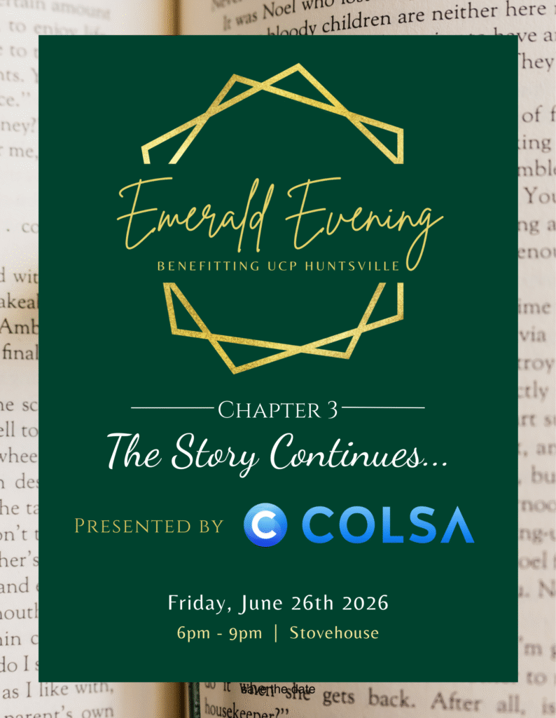 Emerald Evening 2026, UCP Huntsville’s signature fundraising gala, brings together business leaders, families, and advocates for a night of celebration, inclusion, and impact. As we turn the page to Chapter 3: The Story Continues…, we invite you to help write the next chapter.